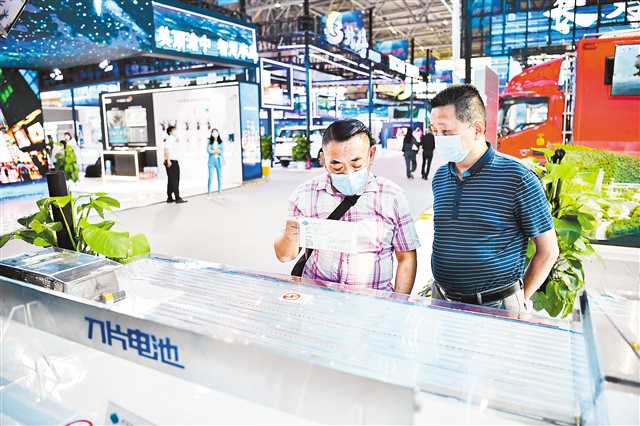 8月23日,重慶國際博覽中心,嘉賓正在了解刀片電池。記者 謝智強(qiáng) 攝/視覺重慶