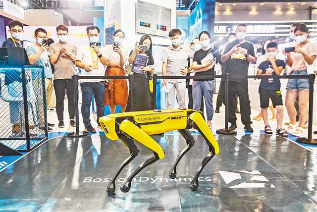 8月24日,重慶國際博覽中心,智博會展場中央展館,市民正在觀看英特爾機(jī)器狗跳舞。首席記者 龍帆 攝/視覺重慶