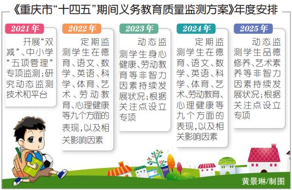 據(jù)了解,《方案》監(jiān)測目的在于科學(xué)客觀反映“十四五”期間重慶市義務(wù)教育階段學(xué)生學(xué)業(yè)質(zhì)量、身心健康及變化情況,深入分析影響重慶市義務(wù)教育質(zhì)量的主要原因,為改進(jìn)教育治理提供科學(xué)依據(jù)。