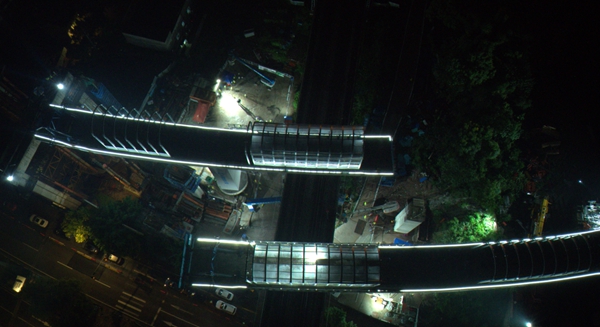 據(jù)項目技術(shù)負責人介紹,重慶軌道交通5號線江跳段,上跨渝貴高鐵段位于重慶市主城區(qū),南臨華福大道出城主干道,右線東鄰渝貴高鐵、左線西鄰渝貴高鐵,北鄰110KV華跳南北線高壓線,南鄰110KV敖跳南北線高壓線,施工場地狹小,施工難度大。