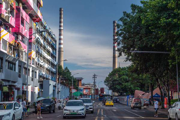 黃桷坪正街新貌與電廠煙囪。陳林?jǐn)z
