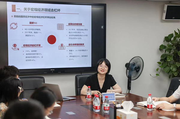 馮金華正在講解宏觀經濟。江北嘴管委辦供圖