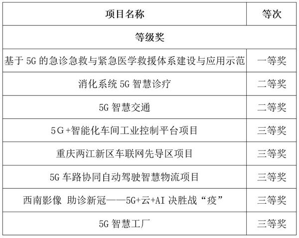 獲獎項目名單。重慶信息通信研究院供圖