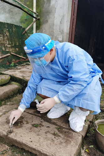 專業(yè)技術(shù)人員帶教實(shí)習(xí)人員開展人禽流感監(jiān)測(cè)。江津區(qū)疾控中心供圖