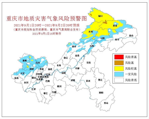 人民網(wǎng)重慶9月1日電 9月1日16時(shí),重慶市規(guī)劃和自然資源局、重慶市氣象局聯(lián)合發(fā)布全市地質(zhì)災(zāi)害氣象風(fēng)險(xiǎn)預(yù)警。