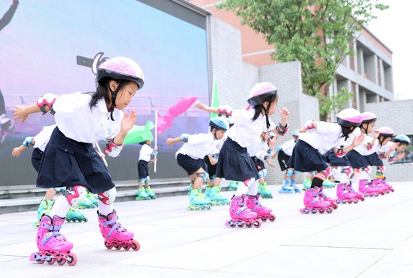 社團學生展示輪滑表演。重師附二小供圖