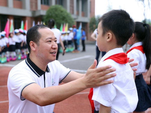 校長譚愛民鼓勵孩子新學期加油。重師附二小供圖