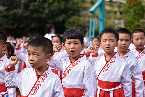 東城小學(xué)學(xué)生在開學(xué)典禮中。江津融媒體中心供圖
