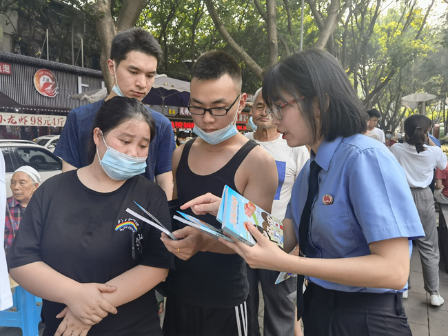 人民網(wǎng)重慶9月3日電 9月2日下午,在渝北區(qū)龍山街道龍脊廣場上,排隊接種疫苗的居民正在耐心等待時,被旁邊的一陣宣講聲吸引了注意力,龍山街道龍山路社區(qū)黨委聯(lián)合重慶市檢察院第五分院“莎姐”法治宣講團正在這里開展政法隊伍教育整頓工作及《民法典》宣講。