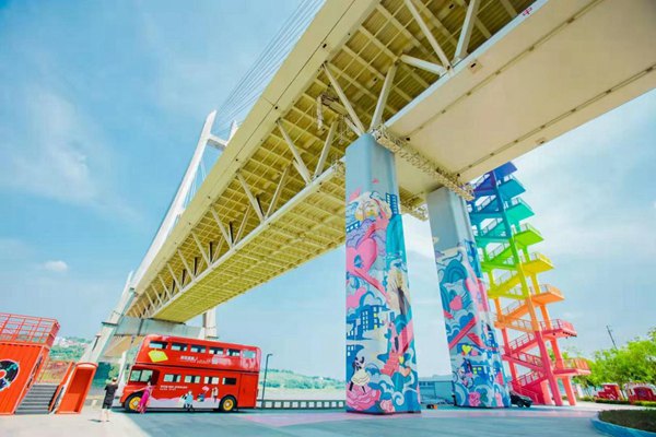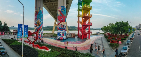 愛情文化長廊充分利用生態(tài)景觀游線將愛情文化的元素串聯(lián)到整個長廊中,以“大江之津 大愛之城”為主題,以長江濱水帶為脈絡(luò),對橋墩、樓梯、綠化等環(huán)境進(jìn)行了微改造。