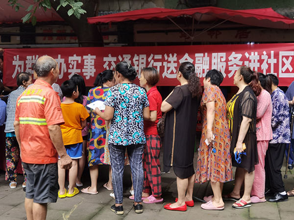 網(wǎng)點青年員工送金融服務進社區(qū)。交行重慶市分行供圖