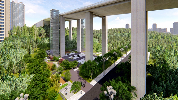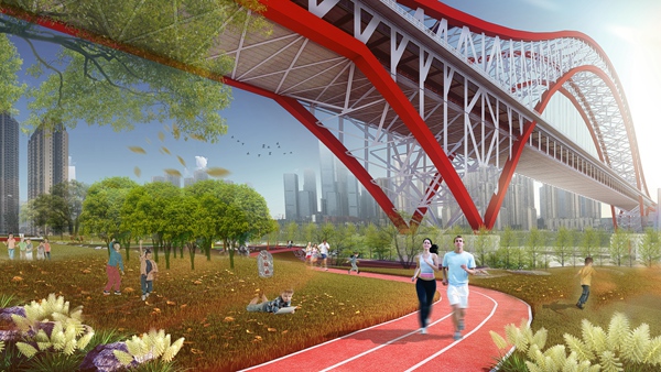 朝天門長江大橋橋下特色空間效果圖。重慶市住房和城鄉(xiāng)建設(shè)委員會供圖