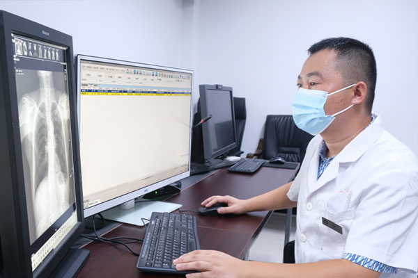 鄭青松的工作一點也不輕松。在診室外,眾多患者排隊等著拍片、拿報告,因此鄭青松和他的同事們一刻也不得閑。除此以外,他們還要在遠程平臺上接收來自鄉(xiāng)鎮(zhèn)衛(wèi)生院發(fā)來的影像圖片,為那些無法來院的患者評估影像情況。