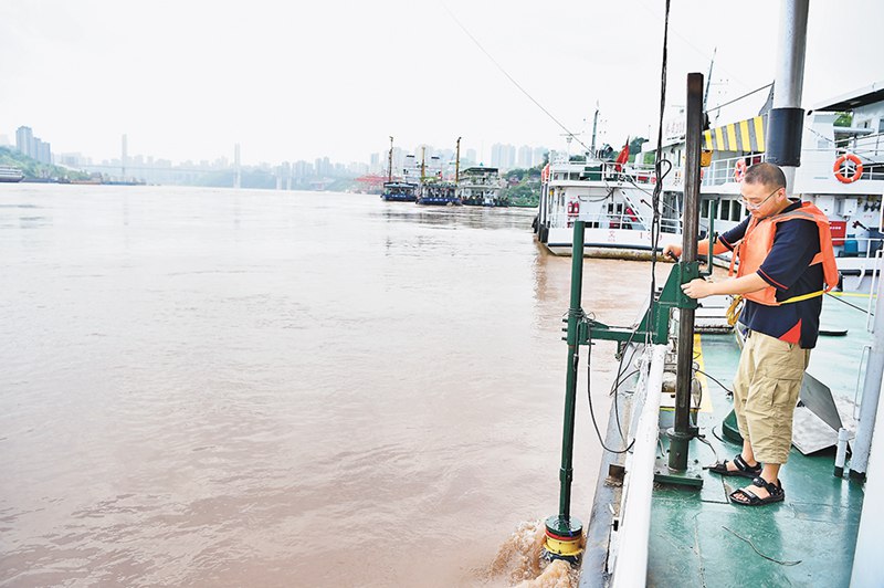 9月7日,長(zhǎng)江上游水文水資源勘測(cè)局工作人員在對(duì)長(zhǎng)江寸灘段流量進(jìn)行測(cè)量。新華社發(fā)