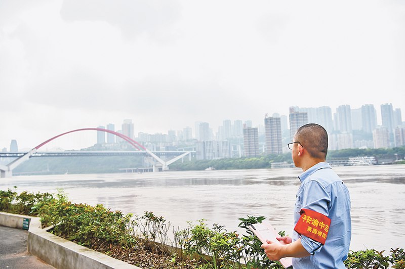 “十碼頭步道有塌方險(xiǎn)情,今晚喊話時(shí)一定要再次通知居民注意安全!9月7日下午6點(diǎn)過(guò),渝中區(qū)朝天門街道,社區(qū)志愿者劉昌友向前來(lái)接班的志愿者反復(fù)囑咐。受洪水過(guò)境影響,朝天門街道十碼頭臨江步道出現(xiàn)塌方,劉昌友發(fā)現(xiàn)險(xiǎn)情后第一時(shí)間上報(bào)。
