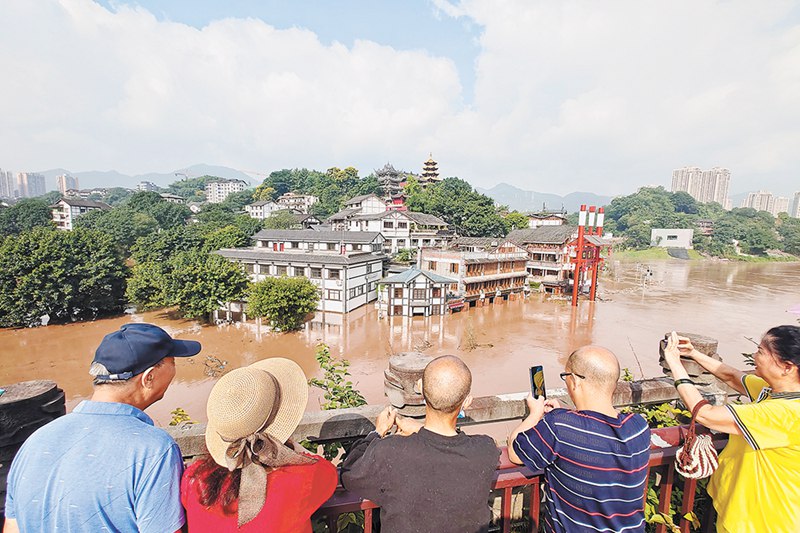 9月7日,沙坪壩區(qū)磁器口,市民觀看嘉陵江2號(hào)洪水通過(guò)主城。記者 崔力 攝/視覺重慶