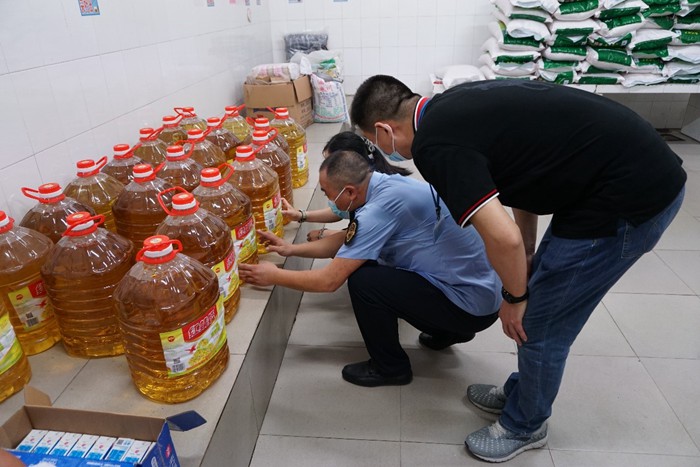 執(zhí)法人員仔細(xì)查看食用油產(chǎn)品信息。夏金梅攝