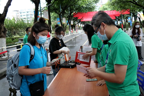 查驗健康碼、行程碼、錄取通知書。重慶工商職院供圖