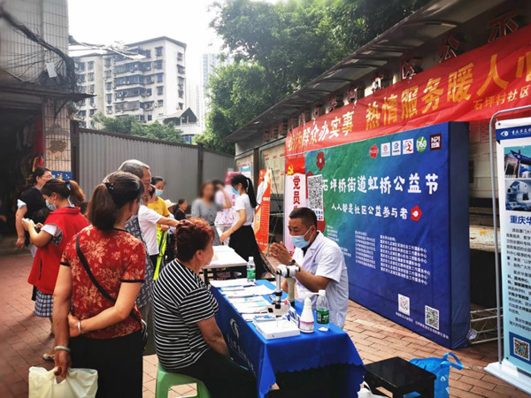 9月7日,石坪橋街道社區(qū)陽光基金聯(lián)合騰訊99公益日,在石坪橋街道各社區(qū)舉行虹橋公益節(jié)活動,重慶華廈眼科醫(yī)院作為公益志愿者參與其中,為居民開展眼健康檢查。