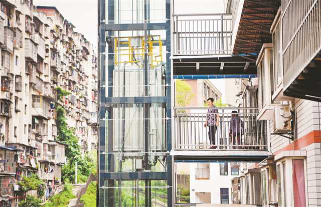 萬州區(qū)鐘鼓樓街道幸福社區(qū)豐收移民小區(qū),老舊住宅增設(shè)電梯后,極大地方便了居民的出行。