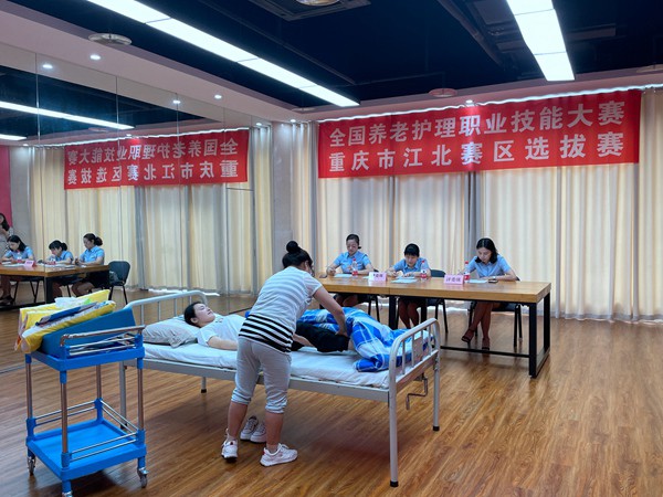 2021年7月15日,由區(qū)民政局、區(qū)人力社保局和區(qū)衛(wèi)生健康委聯(lián)合舉辦的全國養(yǎng)老護(hù)理職業(yè)技能大賽重慶市江北區(qū)選拔賽順利開賽。通過動員培訓(xùn)、層層選拔,來自全區(qū)21家養(yǎng)老機(jī)構(gòu)的23名優(yōu)秀護(hù)理員參加了比賽。