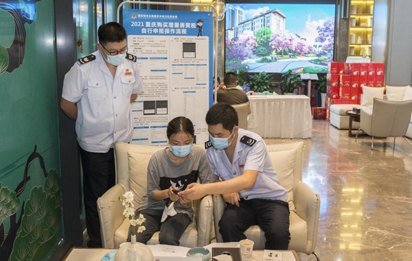 9月1日,契稅法實(shí)施當(dāng)日,重慶市南川區(qū)稅務(wù)局分別前往區(qū)內(nèi)各大樓盤,向購房者宣傳輔導(dǎo)契稅自行申報(bào)。焦相寅攝