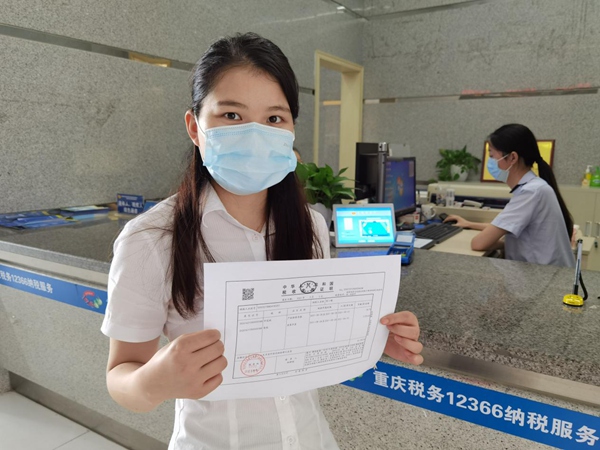 9月1日,重慶兩路寸灘保稅港區(qū)稅務(wù)局辦稅服務(wù)廳開出納稅人自行申報(bào)繳納后的契稅完稅證明。張哲攝