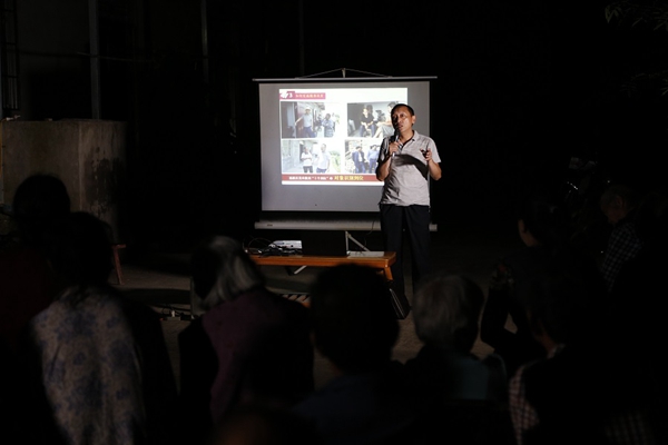 夜幕之下,一臺(tái)筆記本電腦,一塊簡(jiǎn)易幕布,兩個(gè)便攜式音響,一個(gè)簡(jiǎn)易的“夜校課堂”就在村委會(huì)前的廣場(chǎng)上搭建起來(lái)。