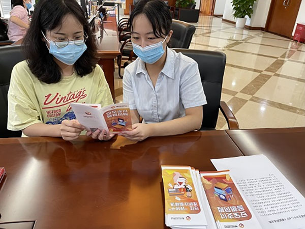 針對(duì)分行只有一個(gè)營(yíng)業(yè)網(wǎng)點(diǎn),客戶均為對(duì)公客戶,無(wú)個(gè)人客戶的實(shí)際情況,進(jìn)出口銀行重慶分行以陣地化宣傳為主,在營(yíng)業(yè)廳懸掛“反詐拒賭、安全支付”“打擊治理電信網(wǎng)絡(luò)詐騙、跨境賭博,我們?cè)谛袆?dòng)”等主題橫幅標(biāo)語(yǔ);制作防詐拒賭宣傳小冊(cè)子,發(fā)放給來(lái)行辦理業(yè)務(wù)的客戶;同時(shí)指定專人作為防詐拒賭宣傳員,為客戶詳細(xì)講解相關(guān)知識(shí)、推薦客戶下載安裝“國(guó)家反詐中心”APP、關(guān)注“國(guó)家反詐中心”公眾號(hào)等,做到網(wǎng)點(diǎn)客戶宣傳全覆蓋。