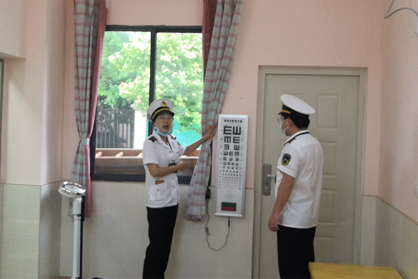 衛(wèi)生監(jiān)督員檢查學(xué)校保健室。江津區(qū)衛(wèi)生健康綜合行政執(zhí)法支隊(duì)供圖