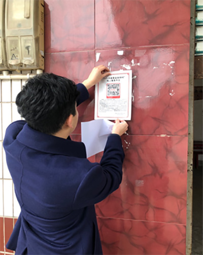 “普惠金融到村”工作組成員逐戶(hù)張貼線(xiàn)上平臺(tái)二維碼。工行重慶市分行供圖