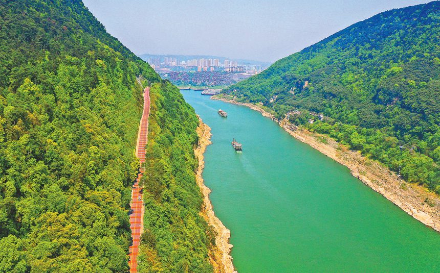長江銅鑼?shí){呈現(xiàn)出綠水青山生態(tài)峽谷的美麗景觀。近年來,重慶實(shí)施兩江四岸提檔升級工程,銅鑼?shí){沿岸修建了公園,改造了公路,植被郁郁蔥蔥,生態(tài)持續(xù)恢復(fù)。(資料圖片) 特約攝影 鐘志兵/視覺重慶