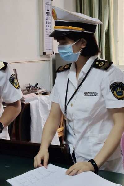執(zhí)法人員調(diào)閱相關(guān)數(shù)據(jù)。北碚區(qū)衛(wèi)生健康綜合執(zhí)法支隊(duì)供圖