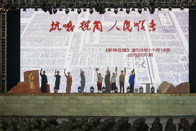 值得一提的是,通過反復(fù)打磨和精心編排,本次展演中首次推出了全新劇目——《抗戰(zhàn)號角 人民喉舌——新華日報》。“新劇目講述的是當年與《新華日報》相關(guān)的革命志士,在新聞輿論戰(zhàn)線上為黨的事業(yè)和國家發(fā)展英勇奮斗的光輝事跡!奔t巖革命故事展演導(dǎo)演白雙全介紹。