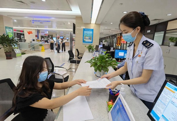 渝中區(qū)稅務(wù)局工作人員為納稅人辦理跨區(qū)(縣)遷移事項。何涵雯攝
