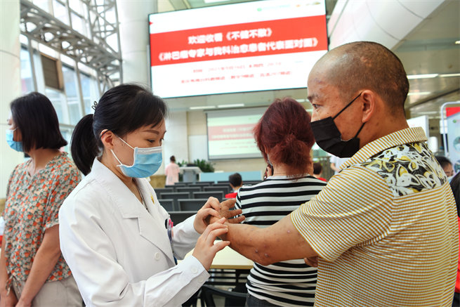 圖為新橋醫(yī)院專家為淋巴瘤患者義診查體。曾理攝