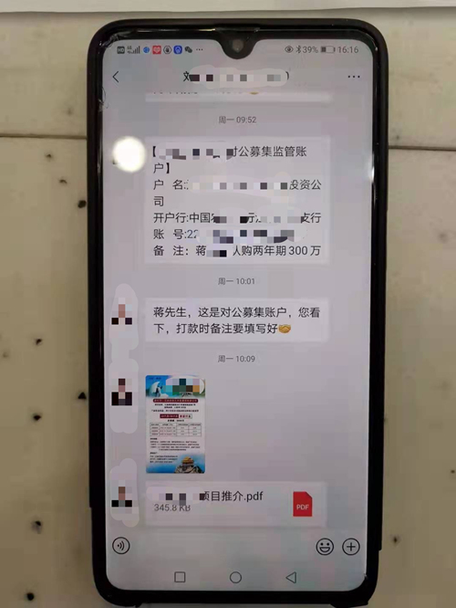 由于對方語言“專業(yè)”,蔣先生很快就著了道,對劉經(jīng)理的話深信不疑,在對方的指引下,計劃對一個以某債券收益權(quán)為名的理財產(chǎn)品進(jìn)行投資,投資300萬元,號稱三年期投資,年化收益率10%,事發(fā)當(dāng)天來銀行就是來轉(zhuǎn)賬買理財產(chǎn)品的,不想遭遇了銀行工作人員的“百般阻撓”。