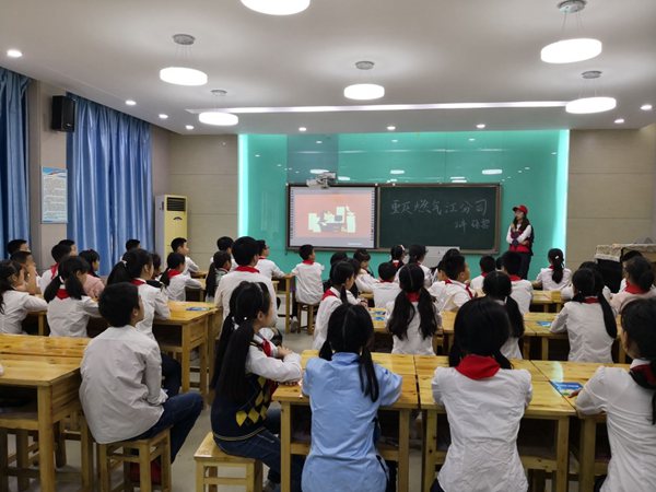 重慶燃?xì)馇嗄曛驹刚邆冏哌M(jìn)校園開展安全用氣小常識普及。重慶燃?xì)饧瘓F(tuán)供圖