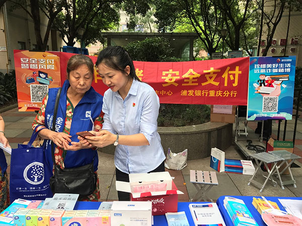 工作人員為社區(qū)居民講解金融知識(shí)。浦發(fā)銀行重慶分行供圖