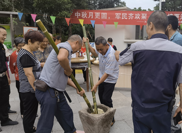 人民網(wǎng)重慶9月17日電 17日下午,渝北區(qū)玉峰山鎮(zhèn)石坪社區(qū)玉坪雅居熱鬧非凡。原來(lái)是當(dāng)?shù)匾愿?jìng)賽的方式,在小區(qū)內(nèi)開(kāi)展中秋佳節(jié)傳統(tǒng)民俗打糍粑活動(dòng)。活動(dòng)中,退役軍人、老黨員、志愿者等紛紛參與,齊心協(xié)力將熱氣騰騰的糯米變成一個(gè)個(gè)團(tuán)團(tuán)圓圓的糍粑,并送到群眾的手上。