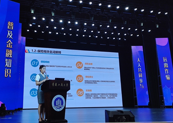 在重慶工商大學(xué)活動啟動儀式上,平安產(chǎn)險重慶分公司向?qū)W校師生作了主題為“無形的保險,有力的保障”演講,對基礎(chǔ)保險知識寶庫保險的定義、分類、相關(guān)名詞解釋、保險合同內(nèi)容等進行講解,讓學(xué)生們對保險基礎(chǔ)知識有了一定的了解。