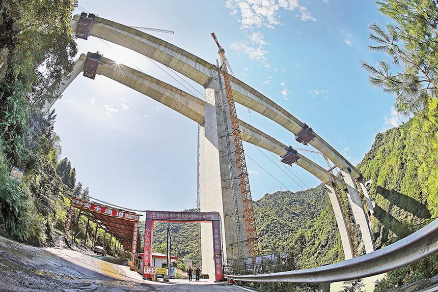 9月15日,城開高速控制性工程——任河特大橋正加緊施工。該橋單幅全長1264米,是城口縣城第一座百米高墩特大橋,大橋有望本月底實現(xiàn)主橋合龍,為明年城開高速城口段通車奠定基礎(chǔ)! ∮浾 羅斌 攝/視覺重慶