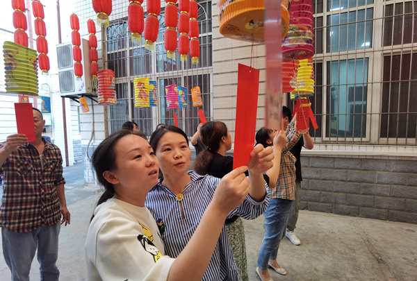 干部與居民參與猜燈謎活動。統(tǒng)景鎮(zhèn)供圖