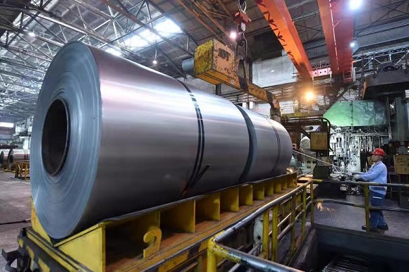 西南鋁員工在吊運2800熱軋大卷。通訊員 李影 攝