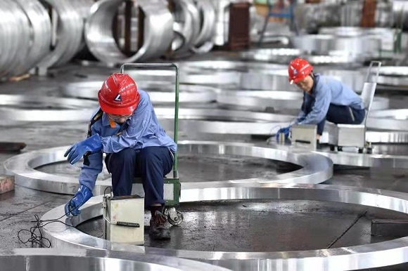 西南鋁員工在對鍛環(huán)進行探傷檢查。通訊員 李影 攝