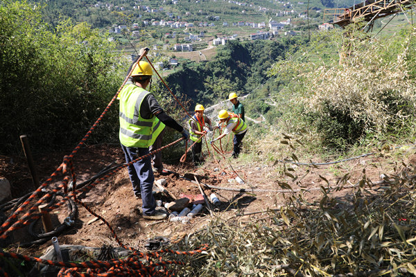 “地勢(shì)高、地形險(xiǎn),施工人員要先在山頂固定錨點(diǎn),用鋼繩拉住挖機(jī),防止發(fā)生次生災(zāi)害!笔208地質(zhì)隊(duì)地災(zāi)防治研究院專家梁峰介紹,每個(gè)錨點(diǎn)由3根鋼柱組成,每根鋼柱打入地下6米以上。目前,所有錨點(diǎn)已建好,所需設(shè)施、設(shè)備、人員等已安排到位,從21日開始,挖機(jī)和爆破工具將進(jìn)場(chǎng)進(jìn)行危巖清理作業(yè)。