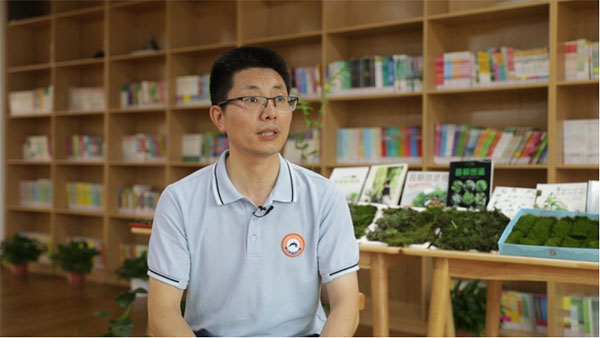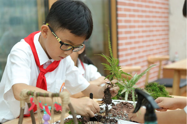 學(xué)生在課堂中運(yùn)用苔蘚制作盆景。向詩(shī)佳攝