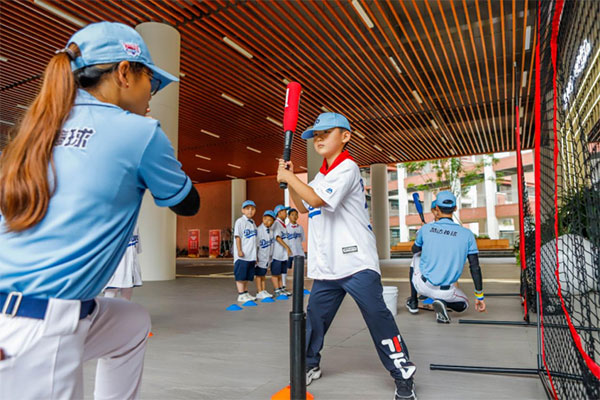 學(xué)生在棒球課堂上。重光小學(xué)供圖