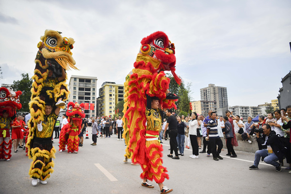 農(nóng)民們用舞獅來(lái)慶祝豐收。開(kāi)州區(qū)農(nóng)業(yè)農(nóng)村委供圖