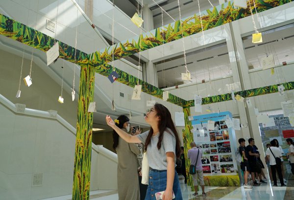 今年5月袁隆平院士去世以后,在西南大學袁隆平塑像前,人們敬獻鮮花時寫下許多寄托哀思的卡片與信件,當時學校一共收集到了2000多張,此次選出了400多張供參觀。除此之外,還展出了學校收集的人們敬獻的二鍋頭、足球、稻米、蠟燭、稻穗等100多件實物。大量檔案、資料照片、報刊文章和袁隆平給西南大學的各種題字題詞等展品,系統(tǒng)地追溯了袁隆平的生平事跡與偉大成就、雜交水稻的攻關(guān)歷程、袁老去世后人們自發(fā)悼念的感人場景以及學校師生創(chuàng)作的懷念文章。